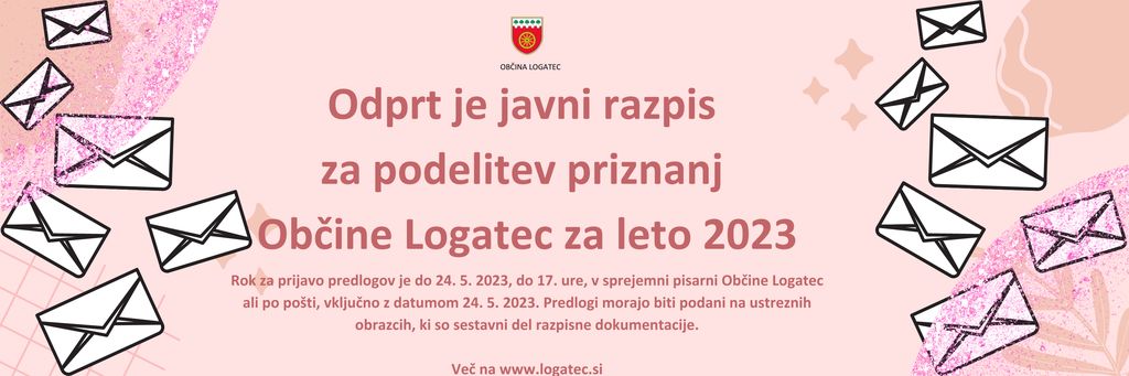 Rok za prijavo predlogov je do 24. 5. 2023, do 17. ure, v sprejemni pisarni Občine Logatec ali po pošti, vključno z datumom 24. 5. 2023.