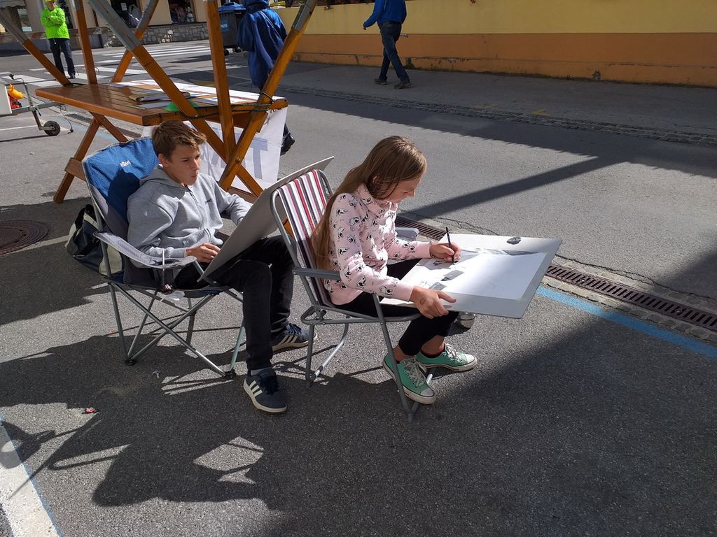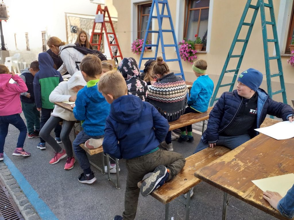 V petek zjutraj so se otroci skupaj z mentorji najprej zbrali v OŠ 8 talcev, kjer so prejeli navodila, material in orodje za delo ter malico. Opremljeni s kartonskimi podlagami, stoli in vso ostalo prtljago so se odpravili na zbirno mesto na Cankarjevi ulici, od koder so se nato podali za iskanjem primernega motiva. V hladnemu dopoldnevu jih je le rahlo pogrel kak sončni žarek in požirek toplega čaja, a so pri delu vztrajali vse od 9. do 12. ure. Na mestu poleg odra so se v delavnici pomudili najmlajši šolarji, ki so narisali svoje vtise z obiska ulice. Med tem, kar jih je najbolj pritegnilo je bilo največ konjev, psov, toboganov in labirintov. Po zaključku ustvarjanja so se udeleženci zbrali ob ulični razstavi nastalih del, kjer so prejeli priznanja za sodelovanje v likovni koloniji. Sodelovali so Etjan Lazarevič, Maruša Mihevc, Lara Šabec in Anamarija Škufca iz OŠ 8 Talcev Logatec z mentorico Urško Župec Mele, Martina Čerin, Lucijan Jerina in Mika Umer Windschnurer z mentorico Natašo Černič iz OŠ Tabor, iz rovtarske šole pa Meta Lukan, Vid Menegatti, Blaž Trček, Vita Turk in mentor Matic Karče. Ustvarjalno dopoldansko druženje je kljub mrazu hitro minilo in po kosilu v šoli so se zadovoljni poslovili.