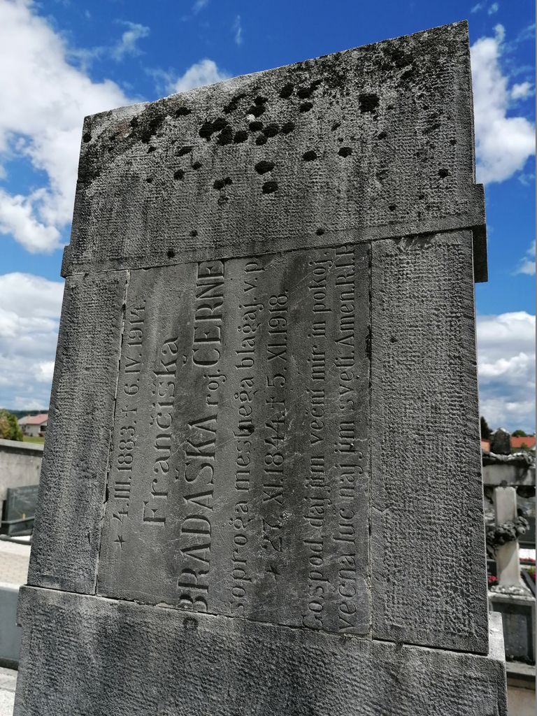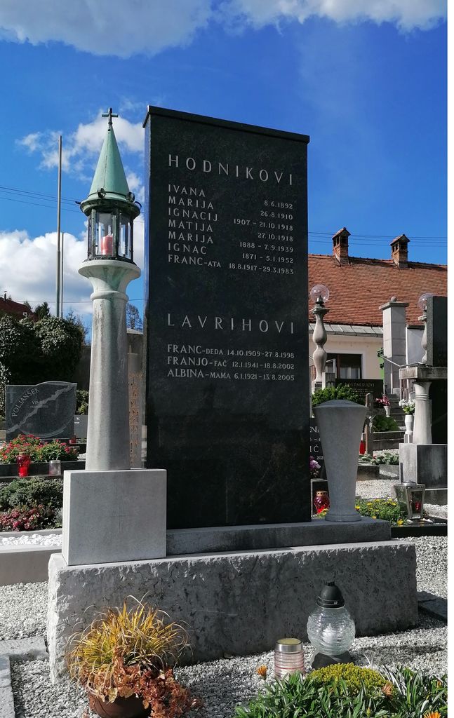 Nagrobni spomenik usnjarja in posestnika Josipa Briclja († 1930, Ivana † 1932 idr.) je bil postavljen na začetku tridesetih let in signiran na kvadru ob napisni plošči. Signirana nagrobna spomenika Hodnikovih (Lavrihovih) in Nacetovih v zgornjem delu pokopališča sta s konca tridesetih oz. začetka štiridesetih let minulega stoletja. Pri obeh je včasih stala na stebriču večna lučka, a se je ohranila le pri prvem. Njen osrednji zastekljeni del je šesterokoten, strma stožčasta strešica s križcem na vrhu pa je kovinska.