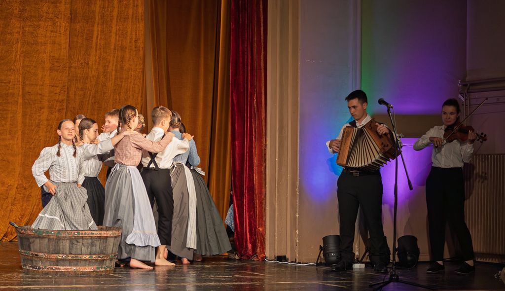 Folklorna skupina OŠ Pirniče pod mentorstvom Marinke Muhič je prikazala odrsko postavitev Mlinarjev sin, Povodni mož je oživel v nastopu folklorne skupine OŠ Dobrova, ki jo vodita mentorici Barbara Burjak in Eva Furman, folklorna skupina Coklarčki iz Kulturnega društva Borovnica z mentoricama Saro Košir in Katjo Debevec pa je občinstvo popeljala Po južni železnici do Trsta. Lojzovo kad in dogajanje okrog nje so predstavili člani starejše otroške folklorne skupine Vidovo iz Kulturnega društva Vidovo Šentvid pri Stični. Skupino vodijo kar tri mentorice - Maja Gjerek, Katarina Dremelj in Neja Kristan. Folklorna skupina OŠ Horjul pod mentorstvom Petra Hribernika je prinesla Očetovo skrinjo, starejša otroška folklorna skupina OŠ Toneta in Franceta Kralja iz Dobrepolja, ki jo vodita Mojca Babič in Martina Prhaj, je prikazala kako je bilo v prejšnjih časih iti Prvič v šolo. Na koncu pa je starejša otroška folklorna skupina SKUD Vidovdan, ki deluje pod mentorstvom Marije Trivundža in Dejana Milanovića, prikazala Plese iz okolice Niša. Program je povezovala simpatična voditeljica Zala Žnidaršič, nastopajoče skupine pa sta strokovno spremljala Klemen Bojanovič in Tadej Teran.