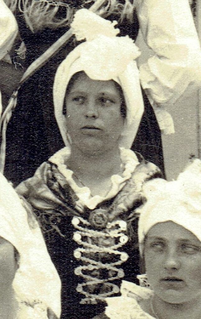 Kmalu za fotografijo iz leta 1930, na kateri so, kot bi lahko zapisali, pripadnostno kostumirana dekleta (nekaj njihovih imen je znanih), smo našli drugo, ki nam je bila še dragocenejša. Je sedemnajst let starejša, torej iz leta 1913, na njej pa je med drugimi v (pre)obleki, sorodni tistim, ki jih imajo dekleta na fotografiji leta 1930, tudi Frančiška Plečnik iz Hotedršice. Frančiška se je poročila v Ilirsko Bistrico in prevzela možev priimek Benigar. Tam je živela in bila zaposlena kot babica. Fotografijo nam je posredoval njen pravnuk Miran Klemenc, ki je poleg fotografije ohranil tudi svileno ruto z resami, ki jo je nosila njegova prababica Frančiška Plečnik Benigar.