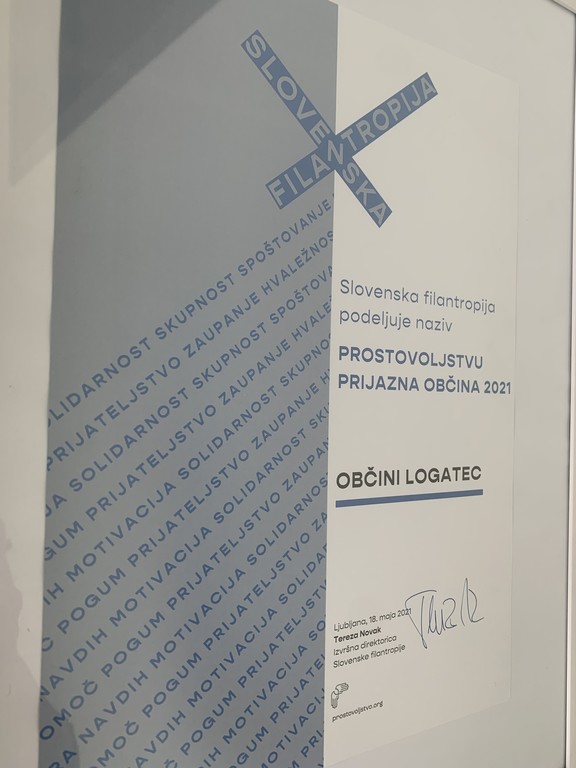 Naziv Prostovoljstvu prijazna občina smo v Logatcu prvič prejeli v lanskem letu, tudi letos pa je Slovenska filantropija prepoznala pozitivne korake na tem področju v naši občini. Laskavi naziv je Občina Logatec prejela za prepoznavanje vrednosti prostovoljstva in aktivno podporo prostovoljskim programom, za podporo široki mreži prostovoljskih organizacij z omogočanjem dela v prostorih občine in promocijo prostovoljskih programov med občani.