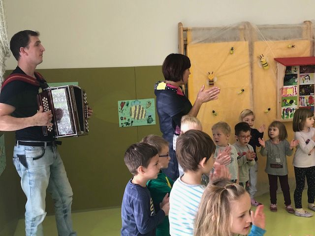 Po sladkem medenem zajtrku so otroke obiskali tudi ravnateljica Vrtca Kurirček Logatec Brigita Česnik, pomočnica ravnateljice Majda Berzelak, pomočnica ravnateljice Leonida Žagar Petrovčič ter logaški župan Berto Menard. V nagovoru je župan otrokom povedal, kako pomembno je, da skrbijo za okolje, ki nam nato naša pravilna ravnanja nagradi z zdravimi in kvalitetnimi pridelki – hrano. In ker ob takšnem dnevu ne gre brez petja, plesa in zvokov harmonike, so otroci zbranim pripravili tudi pester kulturni program. Zaključili so ga z melodijo Slakovega Čebelarja, nato pa hitro pohiteli na »svoje medenjake«, ki smo jih z veseljem poskusili tudi mi.