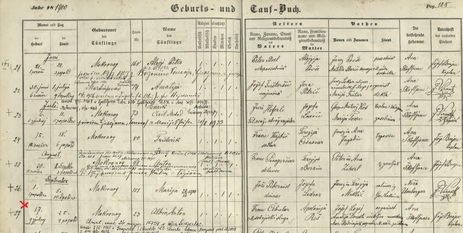 [1] NŠAL, Župnija Mokronog, Krstna knjiga od 1. januarja 1873 do 31. decembra 1913.
