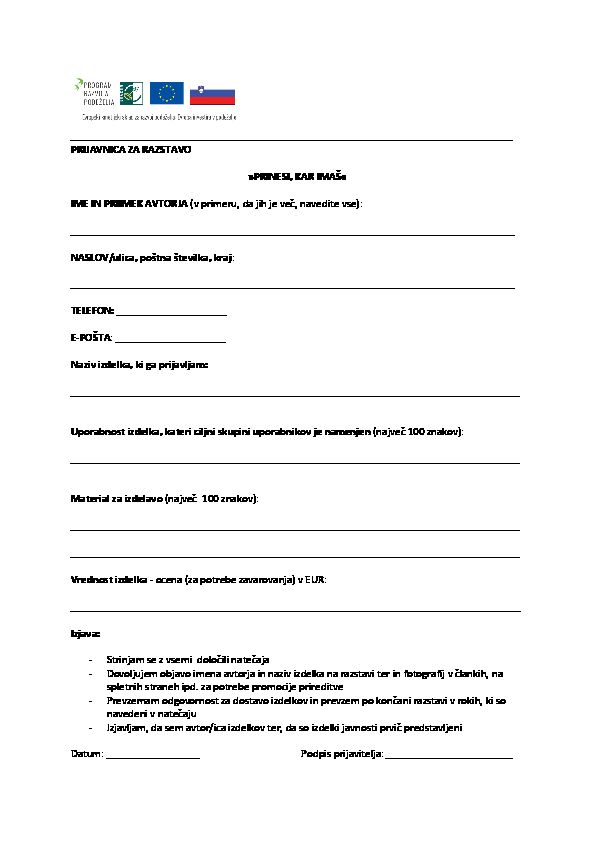 Prijavnica za prijavo na natečaj - http://las-sciljem.si/novice/