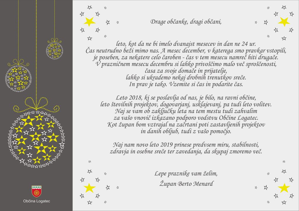 Praznično voščilo župana Občine Logatec Berta Menarda