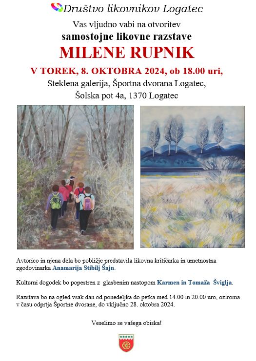 Članica Društva likovnikov Logatec, ki ima za seboj slikarsko petletko. Njena dela nastajajo predvsem v intimi njenega ateljeja. Precizen ustvarjalni proces in dolgotrajno delo v polju slike nista naklonjena njeni udeležbi na ex temporih. V odmerjenem času slika ne bi bila končana, predvsem pa z njo ne bi bila zadovoljna avtorica sama. Je namreč perfekcionistka, ki stremi po barvno in oblikovno dovršenem likovnem stvariteljstvu. Njena dela smo spoznavali na skupinskih razstavah, tokrat pa je avtorica z nami v svoji kompleksni predstavitvi, s svojo prvo samostojno razstavo.