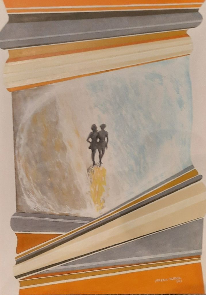 Slike Milene Rupnik vedno uokvirja zgodba. Nagovorijo jo doživetja s sprehodov v naravo, različne situacije in njej drage osebe, pa listanja po knjigah, vsakodnevne informacije in objavljene fotografije. Včasih nastopi v angažirani drži, saj se odziva na po kovidna stanja, s čredo ovac, ki jih upodobi s portretno natančnostjo in izraznostjo, pa tudi na stanja v družbi. Vse to so impulzi, ki jo preko osebnega razmišljanja vodijo v slikarska udejanjanja. V motivnem repertoarju je vsekakor potrebno izpostaviti figuro človeka, saj na marsikaterem slikarskem platnu biva en sam človeški lik ali pa skupina ljudi. Avtorica v simbiozi med črto in barvo ustvarja prepričljive like, trdno utemeljene na klasičnih kanonih. Drugo njeno zanimanje je namenjeno naravi, suvereno pa avtorica vstopa tudi v urbana naselja.