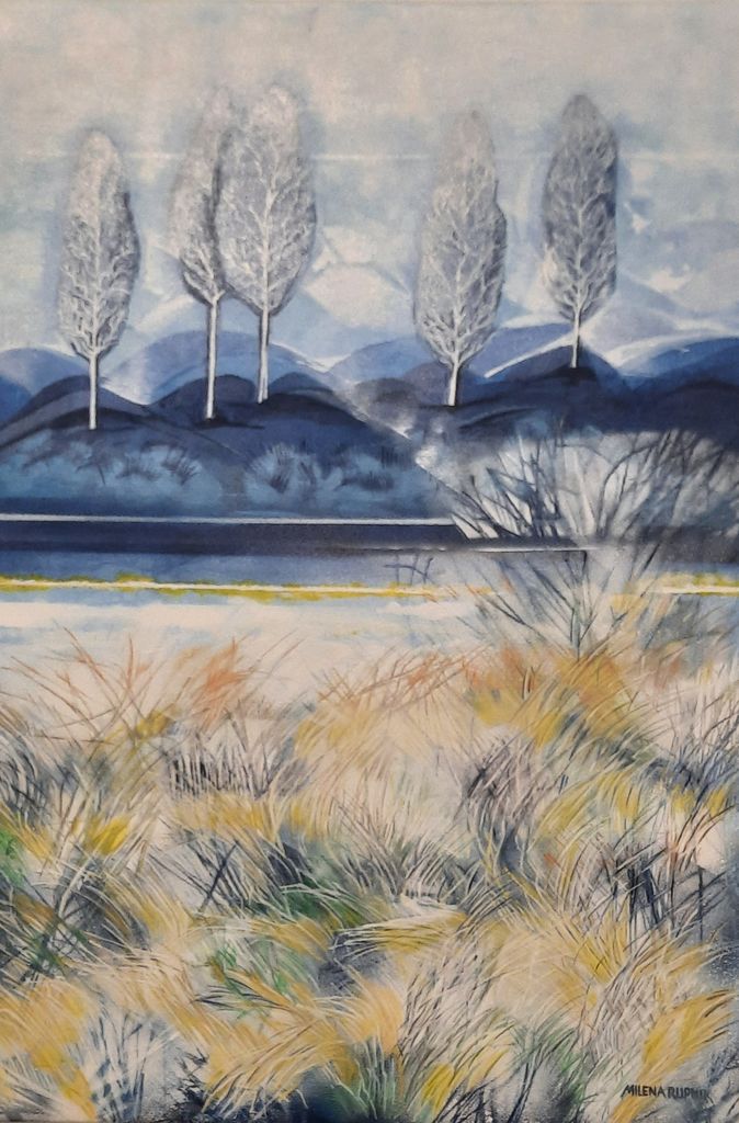 Že kompozicije same so zasnovane premišljeno. Z njimi Milena sledi realnim stanjem, na izviren način pa ustvarja kombinacije realnega in tistega, kar izrazito pripada njenemu idejnemu svetu in njeni domišljiji. Takšen primer je slika Darilo narave, kjer kombinira pogled z Ženčka s konstrukcijo oblikovno jasnih in barvno intenzivnih ploskev, ki predstavljajo okrasni papir, v katerega je zavito darilo slikovitega naravnega okolja. Tudi Spomin na poletje je umeščen v razpiranje pliseja, ki asociira na draperijo.