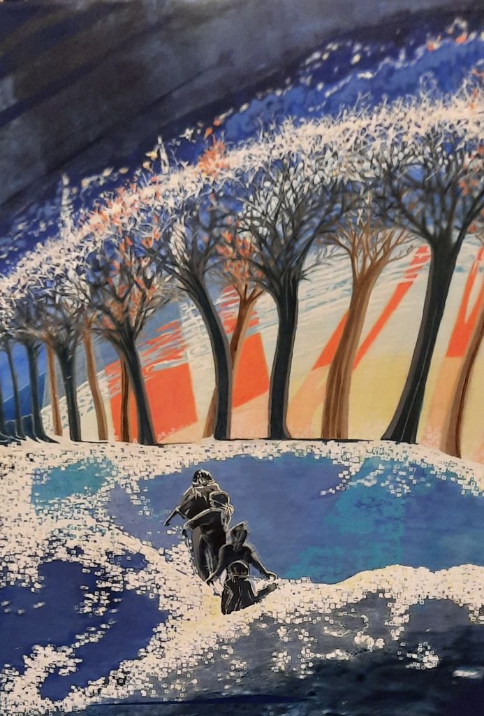 Risba ni izpostavljena le na tej sliki, ampak je slikarkino dragoceno likovno izrazilo, njen adut, s katerim konstruira najrazličnejše elemente ilustrativnosti, od človeških figur do predmetnega sveta, povzema naravne danosti in arhitekturne detajle.