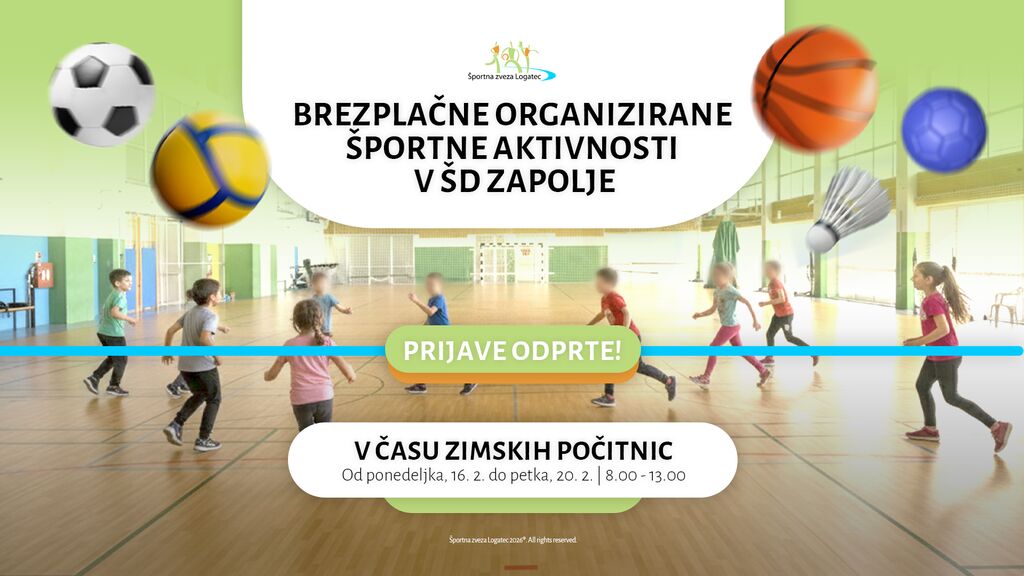 Med zimskimi počitnicami, od 16. do 20. februarja 2026, vabimo vse otroke, da se nam pridružijo na brezplačnih športnih aktivnostih v Športni dvorani Zapolje!