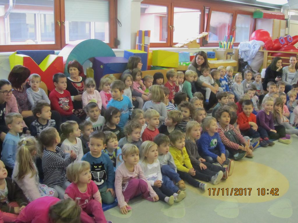 Da pa je bila naša prireditev še bolj bogata, smo vmes, s pomočjo harmonike, zapeli še nekaj pesmi. Na koncu smo skupaj zarajali in se veselih obrazov vrnili v svoje oddelke.
