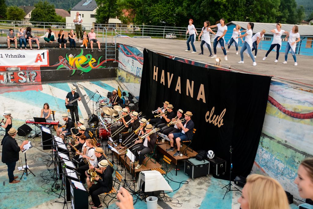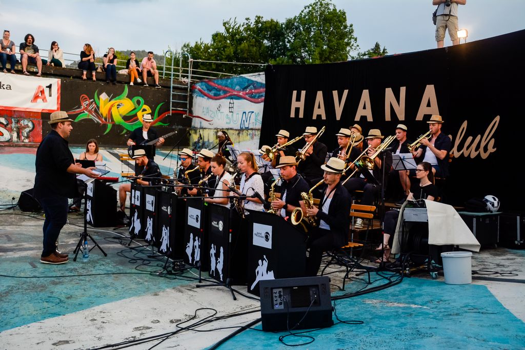 Vrhnika, 20. junij – Big Band Vrhnika pod vodstvom Matjaža Lenarčiča tudi tokrat ni razočaral. Na pragu poletja je vabil v bazen s kubanskimi ritmi, temu primerna je bila tudi oprava nastopajočih. Horn of Puente, Rhytm is Gonna Get You in Cubauza so bile le tri izmed mnogih pesmi, ki so številno občinstvo zibale v vročici Karibskega morja. Za pristno vzdušje je poskrbel še točilni pult, ki je stregel ta večer kaj drugega kot: cuba libre, sex on the beach in gin tonic. Če dodamo, da so dogodek popestrile še plesalke LifeDance in solistka Jana Šušteršič, lahko zaključimo, da je bil večer popoln.