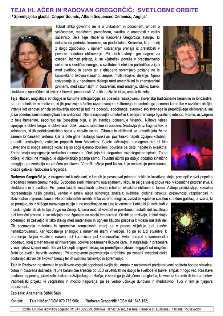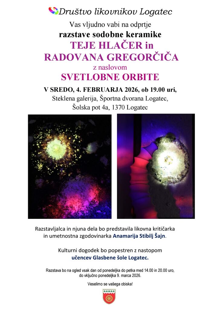 V sredo 4. februarja pod večer se je v Stekleni galeriji Logatec v organizaciji društva likovnikov Logatec odprla razstava sodobne keramike v duelu Teje Hlačer in Radovana Gregorčiča.