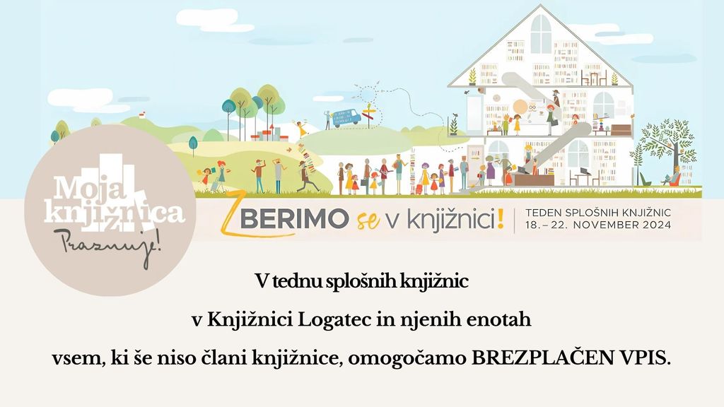 Splošne knjižnice praznujemo Teden splošnih knjižnic po vsej Sloveniji. Od 18. do 23. novembra 2024 bo v številnih knjižnicah potekalo pestro dogajanje za vse generacije pod sloganom Zberimo se v knjižnici!