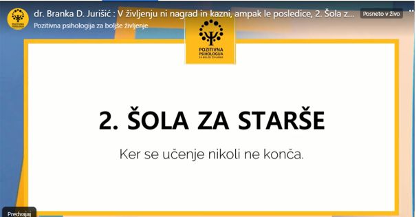 Njeno zanimivo predavanje: V življenju ni kazni in napak, so le posledice – ugodne in neugodne, si lahko pogledate na naslednjih povezavah: