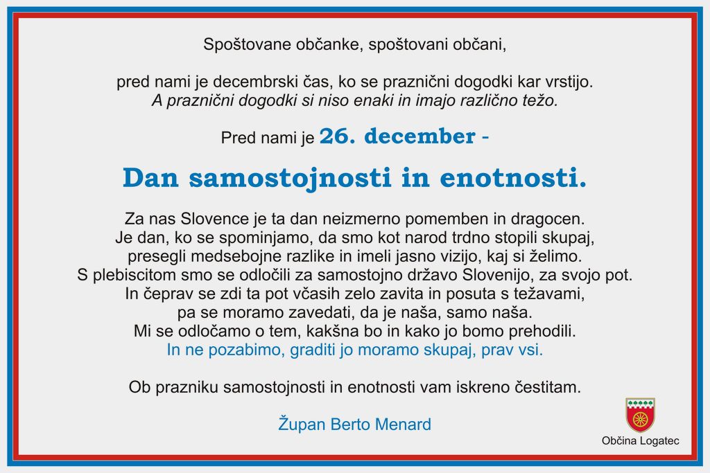 Voščilo ob Dnevu samostojnosti in enotnosti
