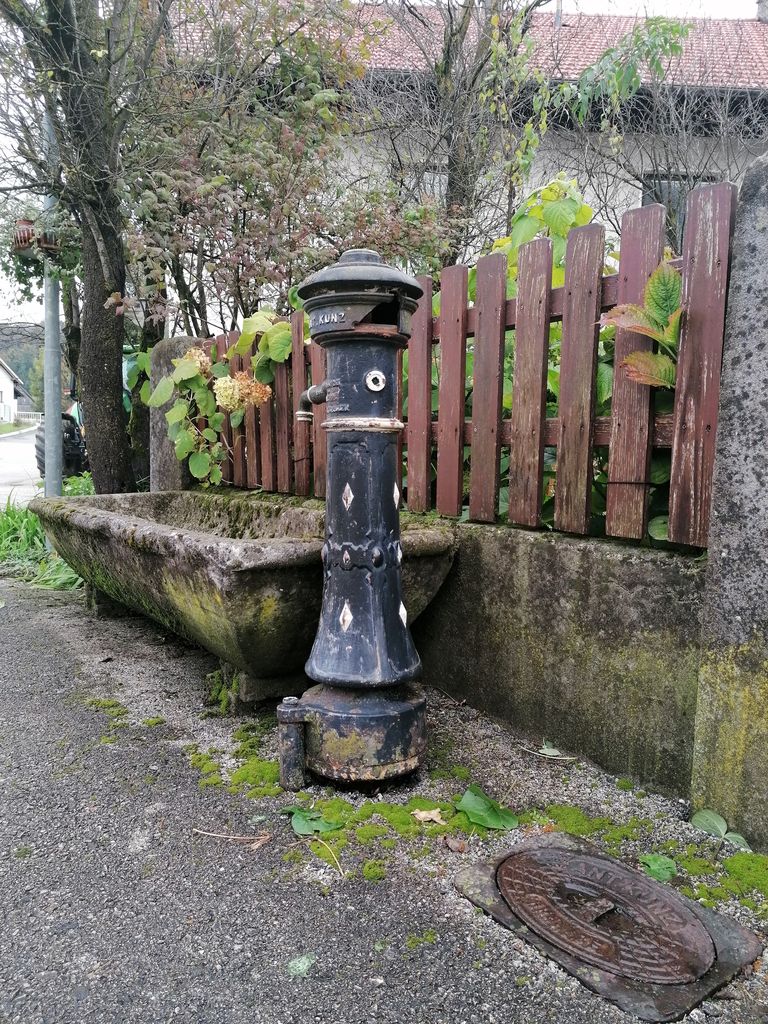 V Hotedršici v neposredni bližini hiše št. 40 (Pr Brus) stoji lepo sklenjena skupina nekdanjega vaškega napajališča, ki ga v tako popolni obliki pri nas le še redko lahko vidimo: podolgovato betonsko korito ter zraven njega litoželezen pitnik, t. i. mož [1] (v. 89 cm, vključno z delom, ki je bil vkopan v zemljo, 102 cm) z litoželeznim odtočnim pokrovom (38 x 26 cm) v tleh. Oba litoželezna izdelka nosita signaturo podjetja Antonína Kunza iz Hranic na Moravskem.