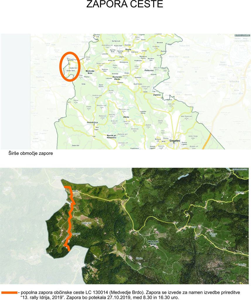 Zaradi prireditve "13. rally Idrija, 2019” bo 7. 10. 2019, med 8.30 in 16.30 uro potekala popolna zapora ceste Mravljišče - Veharše - Godovič.