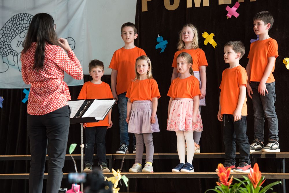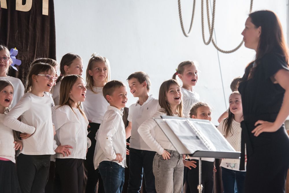 Na začetku je ravnatelj šole Jurij Kramar pozdravil občinstvo in se zahvalil zborovodjem in pevcem za njihov trud in vztrajnost ter staršem, ki svoje otroke spodbujajo in podpirajo pri petju v zboru. Najprej se je prisrčnimi skladbicami predstavilo 6 otroških zorov pod vodstvom Andreje Kržišnik, Simona Šubica, Neže Rudolf, Katarine Kokalj in Estere Stojko: OPZ POŠ Rovtarske Žibrše, OPZ POŠ Hotedršica, OPZ OŠ 8 talcev Logatec (1.-2. razred), OPZ OŠ 8 talcev Logatec (3.-5. razred), OPZ Adoramus in OPZ OŠ Rovte (1.-2. razred).