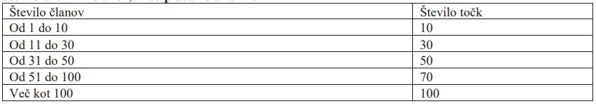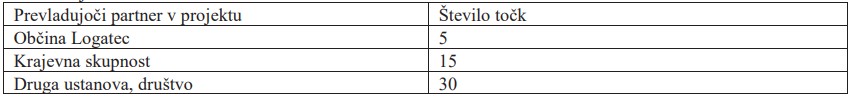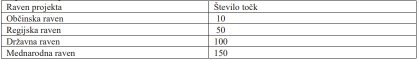 Pri ocenjevanju finančno ovrednotenih projektov predlagateljev se upošteva naslednji točkovnik: