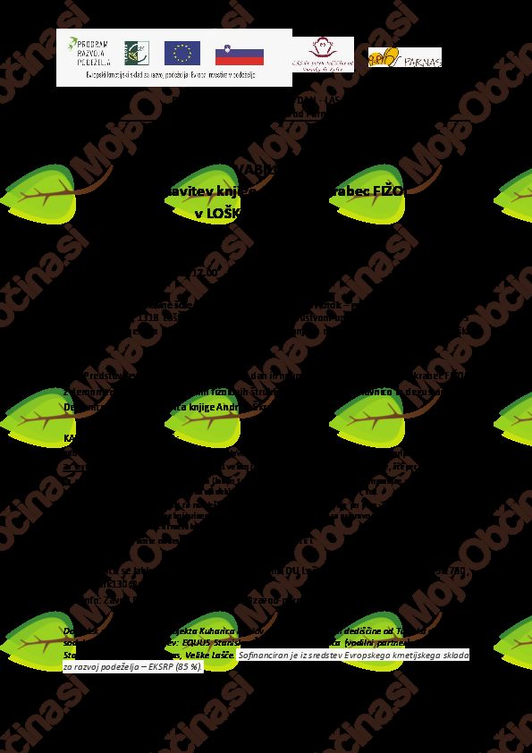 Zavod Parnas v sodelovanju z Društvom upokojencev Loški Potok in OŠ dr. Antona Debeljaka Loški Potok v sklopu praznovanj ob občinskem prazniku občine Loški Potok lepo vabi na predstavitev knjige FIŽOL - avtorice Andreje Škrabec, ki bo v prostorih Osnovne šole dr. Antona Debeljaka Loški Potok – gospodinjska učilnica.