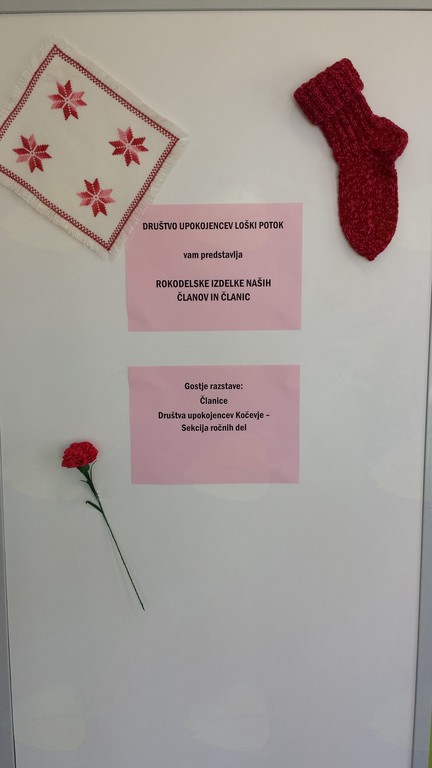 V A B I L O Vabimo vas na razstavo Društva upokojencev Loški Potok - rokodelski izdelki naših članov in članic ter gostov iz DU Kočevje - Sekcije za ročna dela. Razstava je odprta v Kulturno turističnemu centru na Hribu v Loškem Potoku, po urniku KTC-ja. Lepo vabljeni!