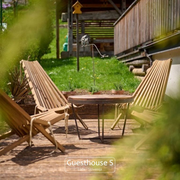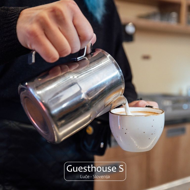 V središču vasi Luče, vas pričakuje Guesthouse S. Je odlična namestitev za goste, ki iščejo bivanje v čistem, varnem in udobnem objemu naše hiše. Nudimo sobe in apartmaje za družine in popotnike. Naše enote so opremljene v starinskem slogu, ki je lepo prepleten z moderni detajli. Poleg udobja in topline smo hiši dodali poseben čar z unikatnimi lesenimi izdelki, ki jih skrbno ustvarja gostiteljica. V pritličju hiše se nahaja kavarna, kjer vas radi prebudimo z edinstvenim okusom kave ILLY. Tudi vaših štirinožnih prijateljev se veselimo.