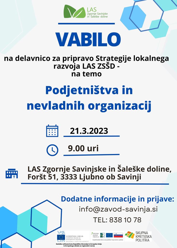 Delavnice se bodo izvedle na sedežu LAS Zgornje Savinjske in Šaleške doline, Foršt 51, 3333 Ljubno ob Savinji.