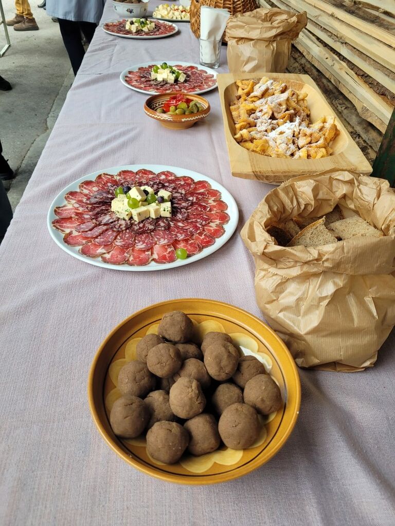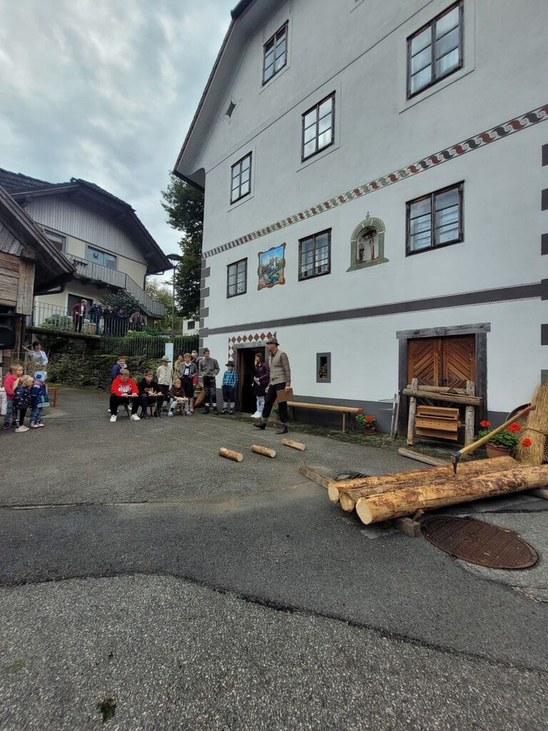 Za zanimiv tehnični poudarek je poskrbel Ajnšk (Ivan Bezovnik), ki je obiskovalcem predstavil lesene pine – posebno napravo, ki so jo nekoč v času kolin na Mlinščici uporabljali za pranje črev. Preprosta, a domiselna konstrukcija je nazorno ponazorila ustvarjalnost domačinov in pomen vode v njihovem vsakdanjem življenju.