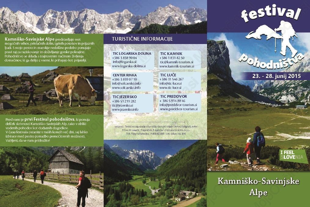 Turistične organizacije v občinah Jezersko, Kamnik, Luče, Preddvor in Solčava organizirajo prvi Festival pohodništva v Kamniško-Savinjskih Alpah, ki bo potekal od 23. do 28. junija 2015.
