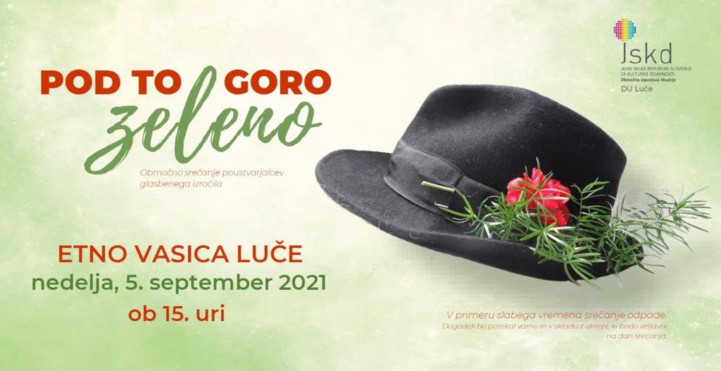 Prijazno vabljeni na srečanje pevcev ljudskih pesmi in godcev ljudskih viž »POD TO GORO ZELENO«, ki bo v nedeljo, 5. septembra 2021, ob 15. uri, v idiličnem okolju, sredi ETNO VASICE v Lučah.