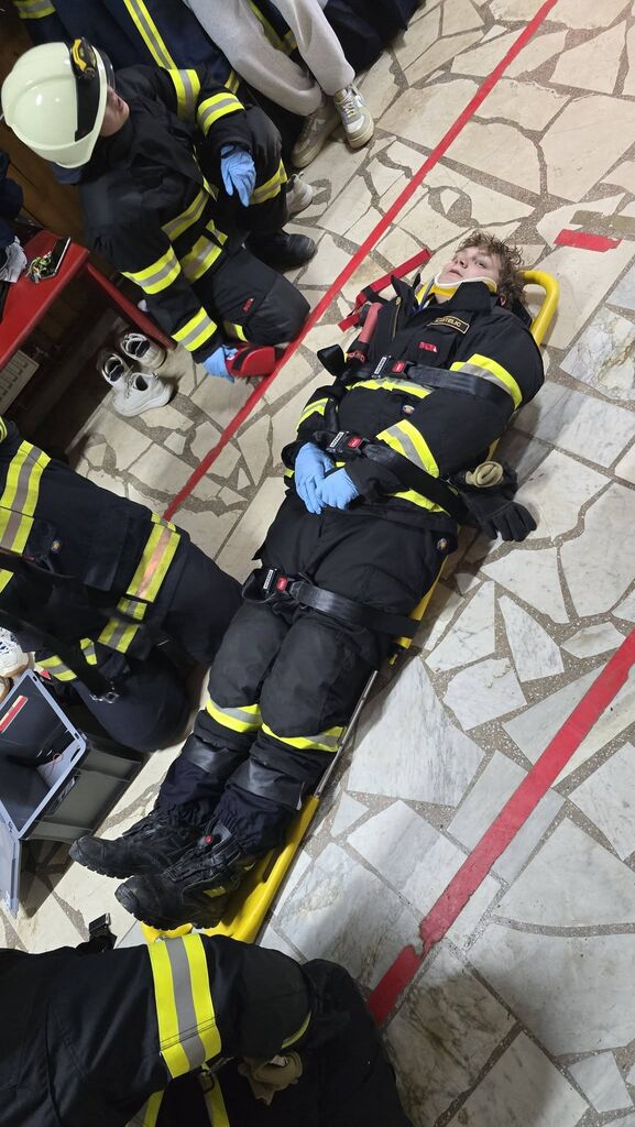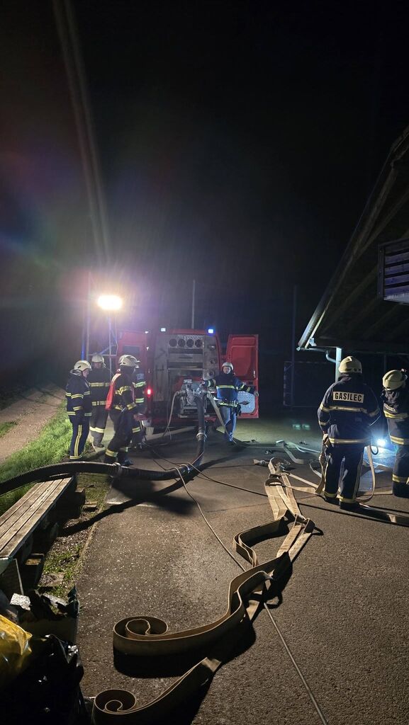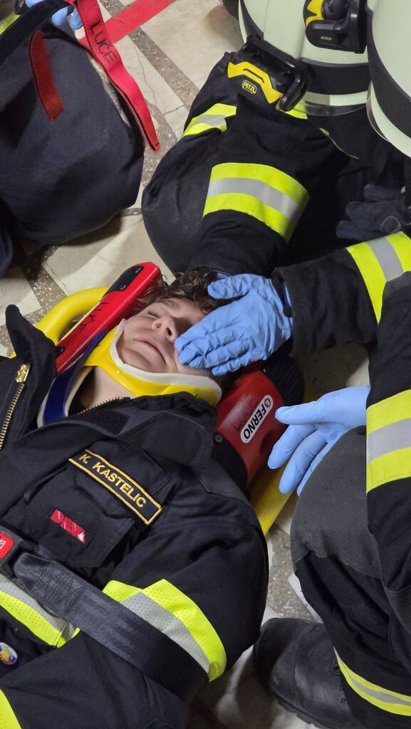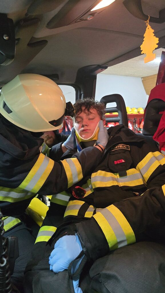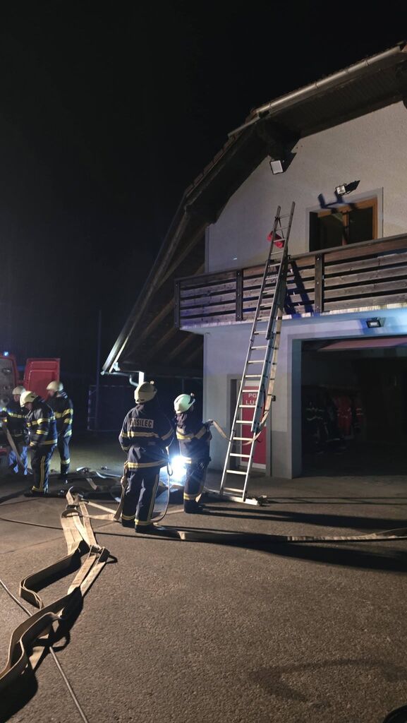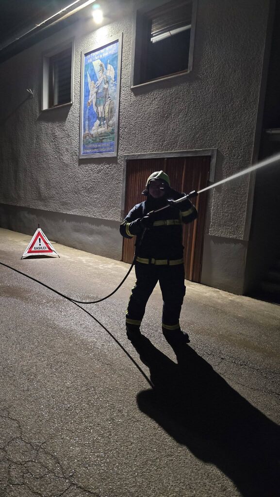 Izvedli smo tudi večjo vajo, kjer naj bi zagorelo v prvem nadstropju stavbe, kamor sta vstopila dva gasilca z izolirnim dihalnim aparatom, sestavili smo sesalni vod in pripravili zalogo cevi. Zavarovali smo območje in uredili usmerjanje ceste. Da se ogenj ne bi razširil, smo hladili najbližja kozolca.