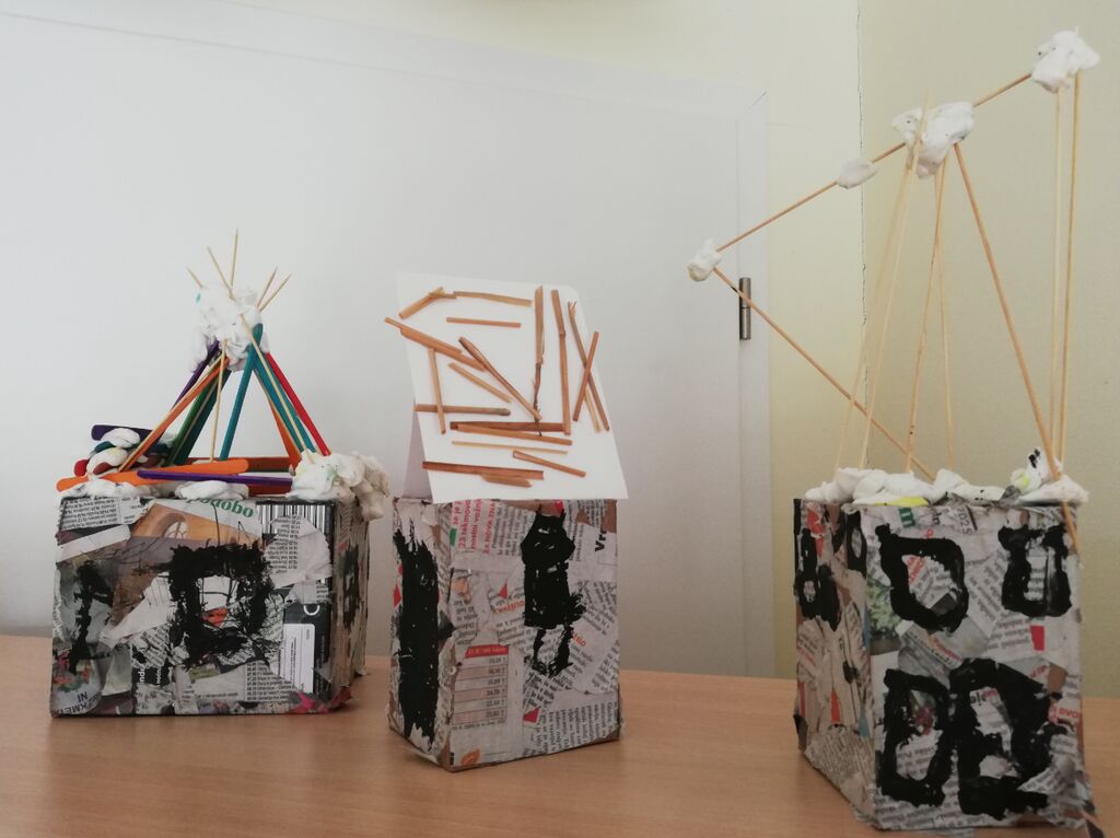 Pravljica Trije prašički je bila zlasti pri najmlajših otrocih izhodišče za razmišljanje o gradnji in o samih materialih nekoč in danes. Otroci so spoznavali različne materiale, z njimi rokovali in se igrali. Z zbranimi lesenimi materiali so otroci cel teden izdelovali hiške, mostove, kozolce… Zgradbe so oblikovali tudi iz plastelina in jih risali z ogljem, plesno so se izražali in ponazarjali gradnjo hiše z gibi ob glasbi Hiško zidamo in prepevali pesem Naša četica koraka.