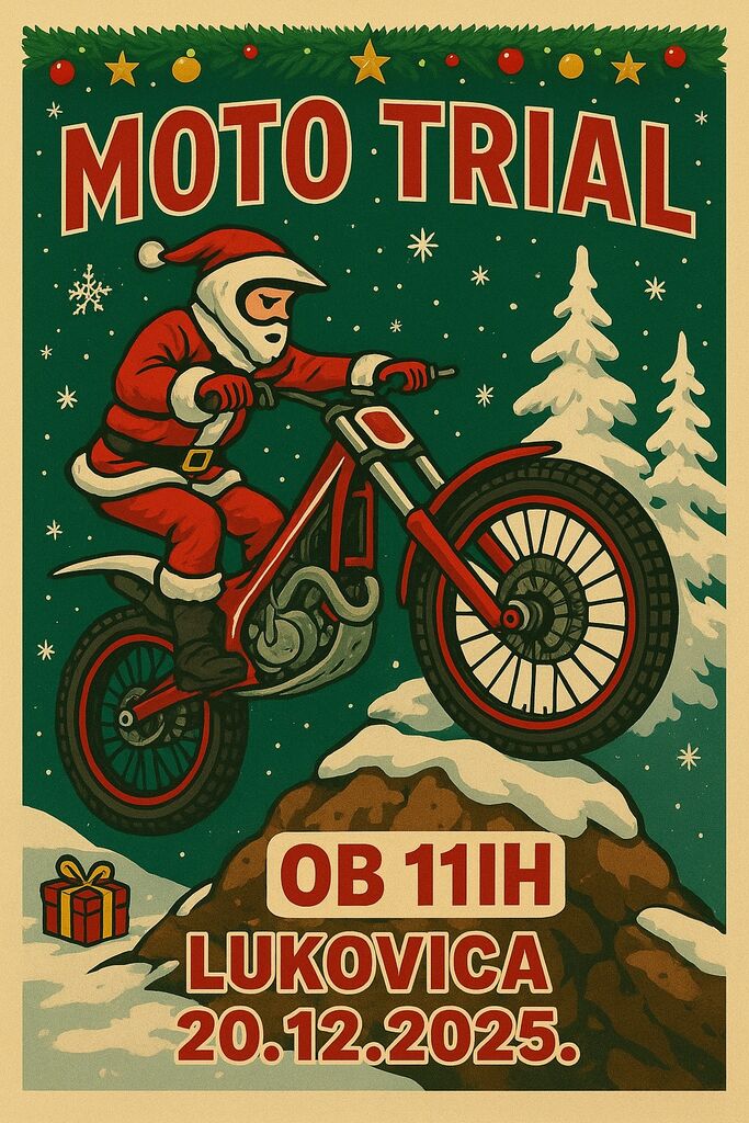 Vabljeni na Božični trial Lukovica 2025, ki bo 20.12.2025 ob 11ih v Lukovici na poligonu pri Avto Kveder.