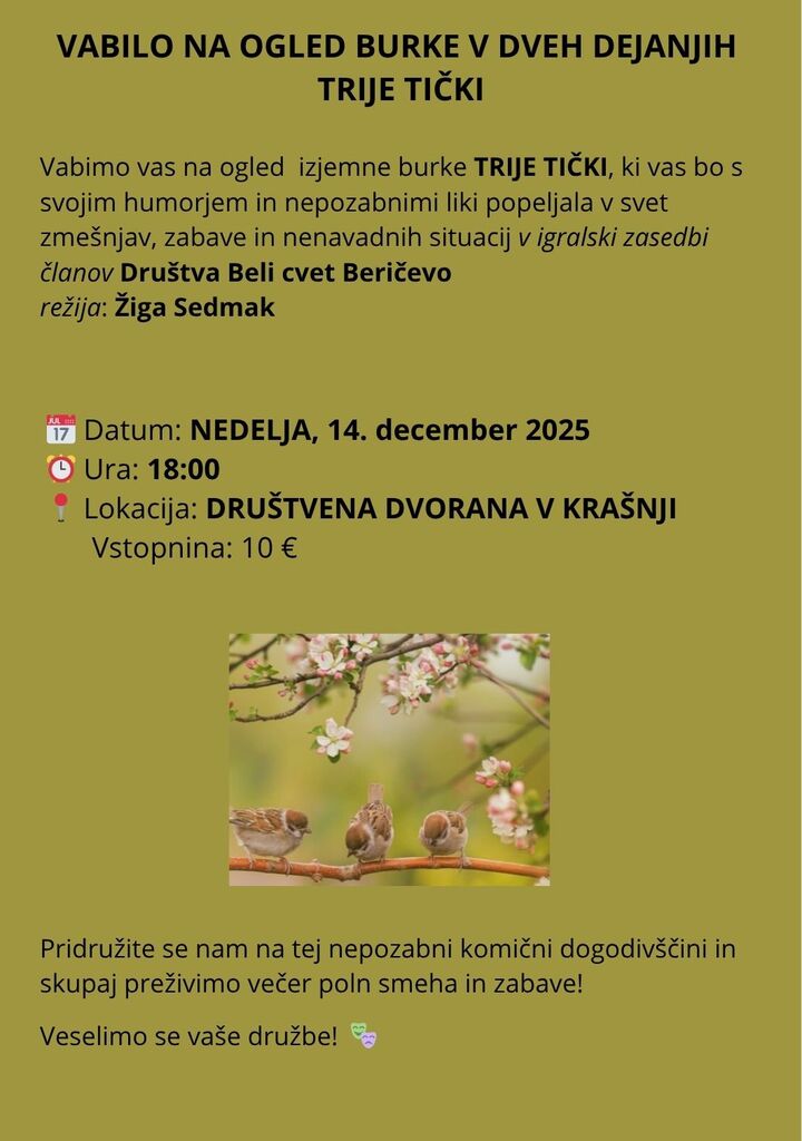 Pridite pogledat v Društveno dvorano v Krašnji in se sami prepričajte kakšen bo konec te burke.