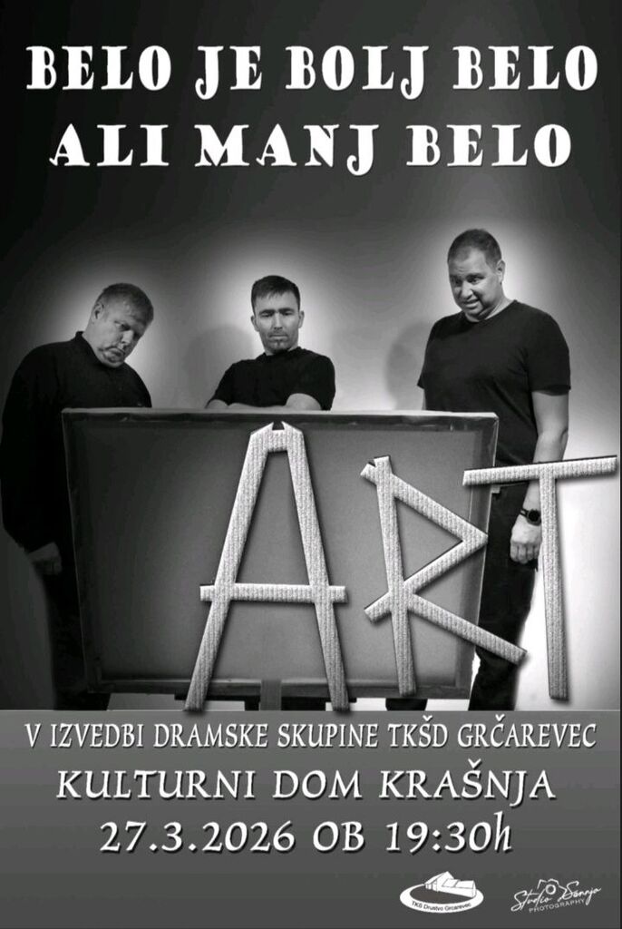 Na odru Društvenega doma v petek, 27. 3., napovedujemo novo gostujočo predstavo - komedijo Belo je bolj belo,ali manj belo v izvedbi dramske skupine TKŠD Grčarevec Vabljeni