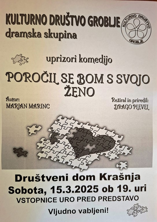 polne smeha, zapletov in neverjetnih trenutkov, ki bo poskrbela, da boste preživeli prijeten večer v družbi svoje boljše polovice in igralcev Kulturnega društva Groblje
