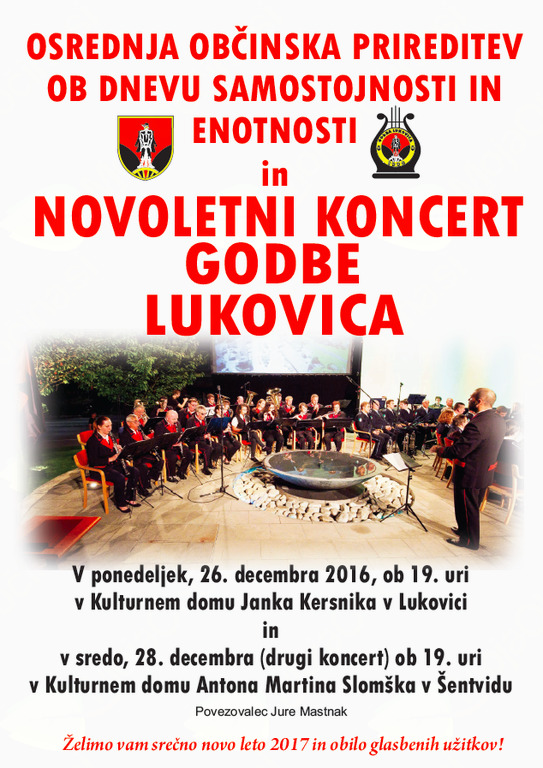 Osrednja občinska prireditev ob dnevu samostojnosti in enotnosti ter koncert Godbe Lukovica