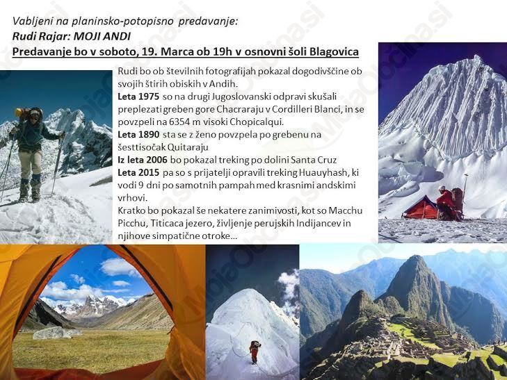 Vabimo vas na potopisno predavanje Rudija Rajarja, ki nam bo v sliki in besedi opisal lepoto Andov.