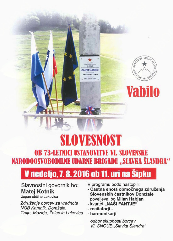 Organizator: Združenje borcev za vrednote NOB Kamnik, Domžale, Celje, Mozirje, Žalec in Lukovica
