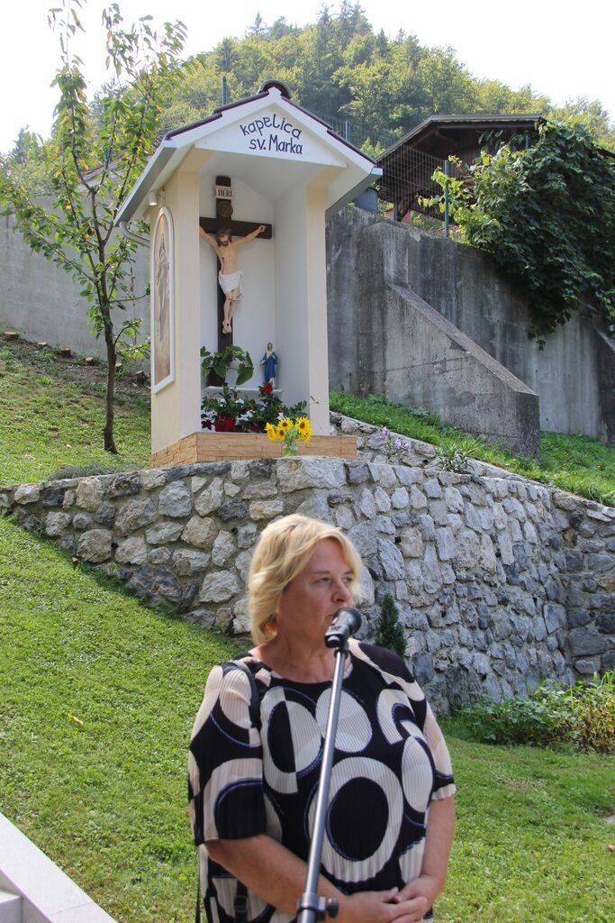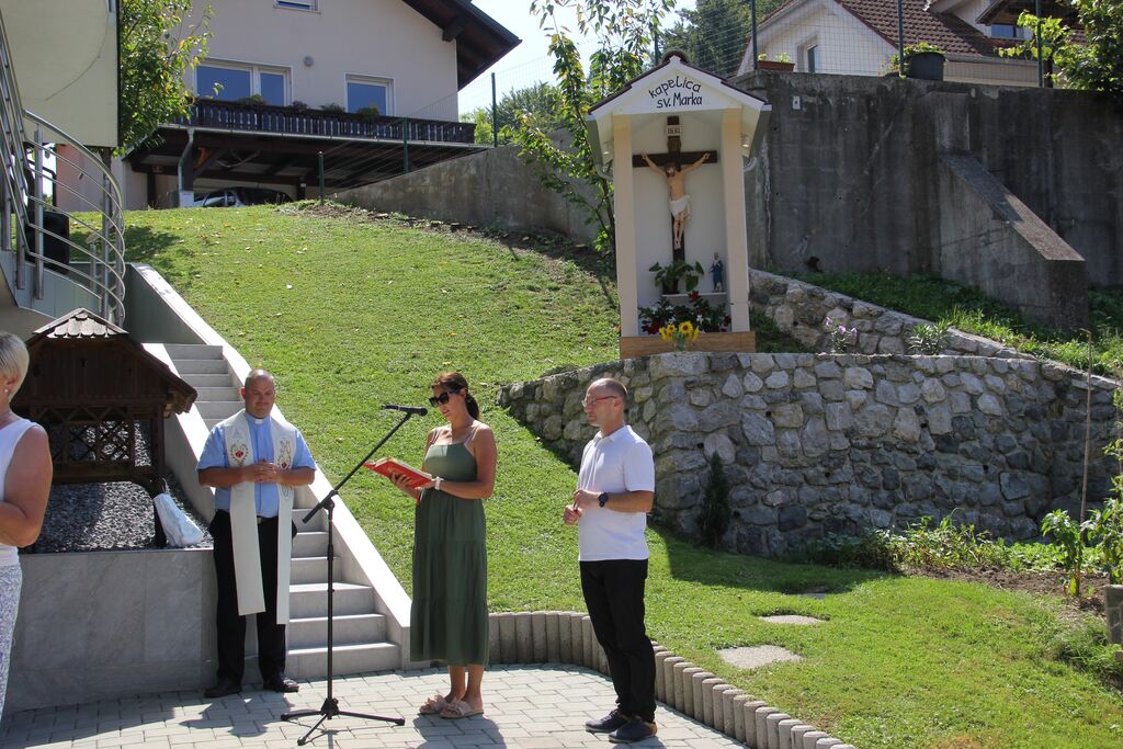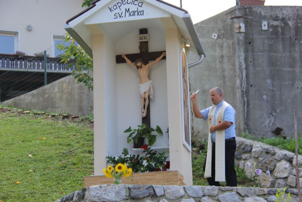 O njem je veliko zapisanega in tudi on je napisal Evangelij po Marku, saj naj bi bil spremljevalec apostola Petra in so zapisane besede, po njegovih besedah, citirane besede Jezusa. Med ostalimi je zapisal tudi to, da so leta 828 beneški pomorščaki ukradli Markove posmrtne ostanke in jih prepeljali v Benetke kjer je bil glavni zaščitnik prej sveti Miklavž, zavetnik mornarjev. V Markovi cerkvi v Benetkah je tudi mozaik, ki prikazuje del legende: pomorščaki so med potjo Markove posmrtne ostanke pokrili s kosi svinjine, zato da jim muslimani za katere je svinjina nečista, ne bi ukradli ravnokar ukradene relikvije. Pri nas je sv. Marku posvečenih 13 cerkev, od tega so tri župnijske, ostale so podružnične. Njemu je posvečena tudi nova kapelica, ki jo je v petek, 15. avgusta, na Marijin praznik pri hiši Pestotnikovih v Trnjavi blagoslovil domači župnik Bernard Rožman. Poleg številnih sorodnikov, prijateljev in krajanov se je blagoslova udeležil še duhovni pomočnik Gregor Luštrek in županja Lukovice mag. Olga Vrankar, ki v svojem nagovoru na koncu blagoslova ni mogla skriti navdušenja, da še znamo stopiti skupaj in poskrbeti za sakralno stavbno dediščino. Po blagoslovu med katerim so prepevali pevci cerkvenega pevskega zbora župnije Krašnja je sledilo še prijetno skupno druženje.