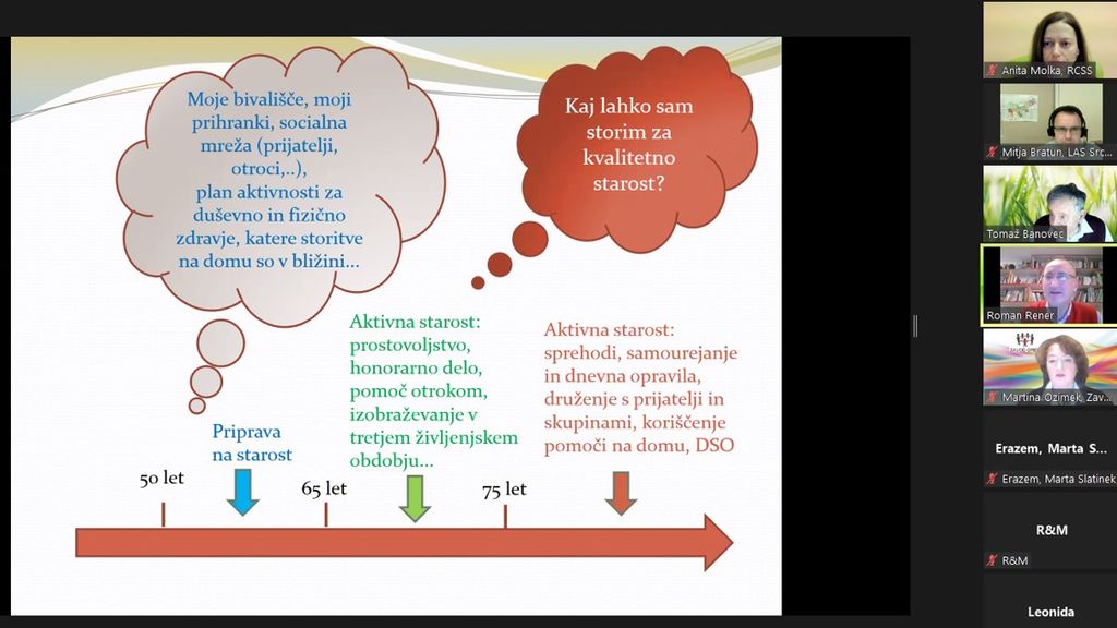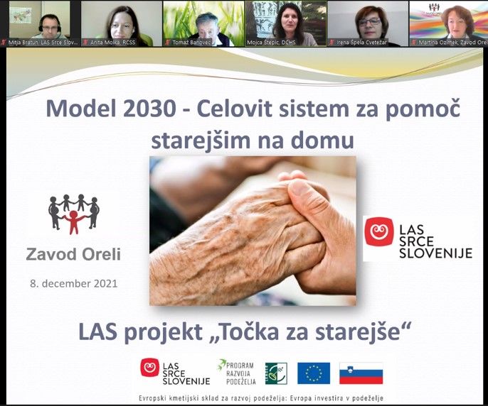 LAS Srce Slovenije je 8. decembra 2021 organiziral spletno predavanje o Strategiji dolgožive družbe. To je prva aktivnost LAS projekta “Točka za starejše”, ki se izvaja v občinah Litija, Šmartno pri Litiji in Lukovica. G. Tomaž Banovec, član Razvojnega Sveta Zveze društev upokojencev Slovenije, je navdihujoče predaval o Strategiji dolgožive družbe ter delil svoje znanje in izkušnje s 26 udeleženci. Predstavnika Zavoda Oreli, ga. Martina Ozimek ter g. Roman Rener sta vodila srečanje in predstavila model mreže enotne pomoči starejšim, ki že 10 let uspešno deluje v občini Kamnik ter prihodnje aktivnosti projekta.
