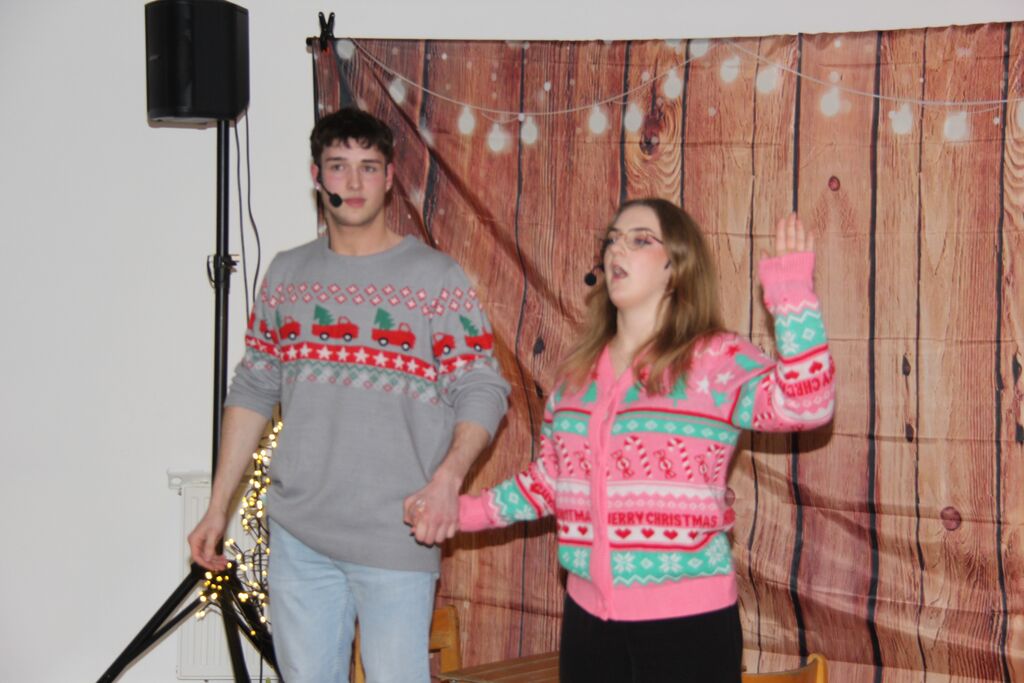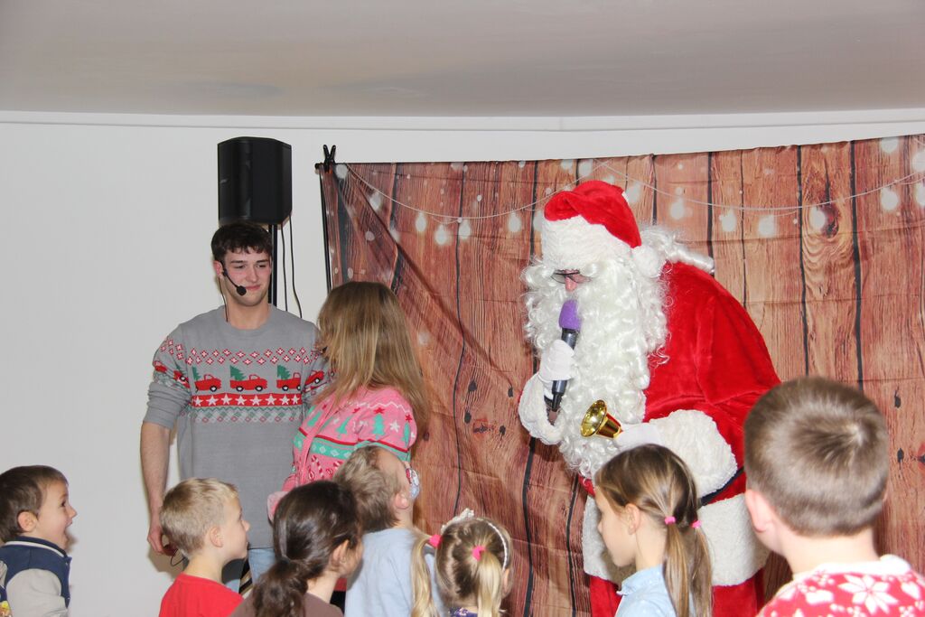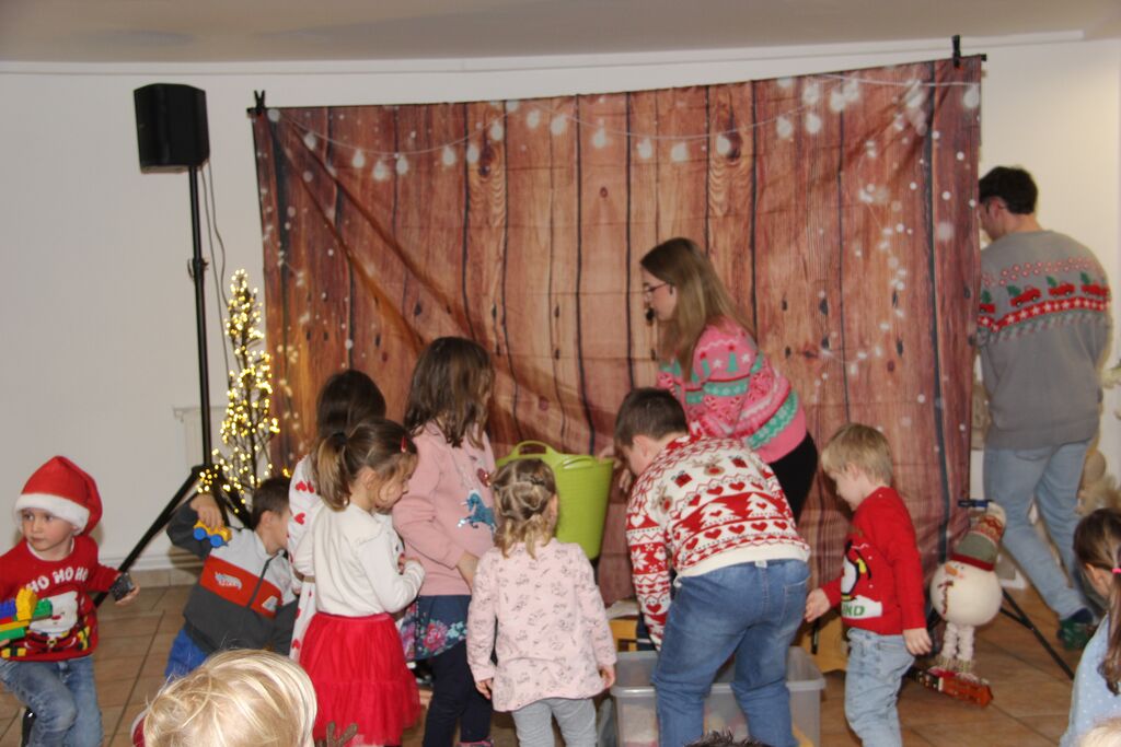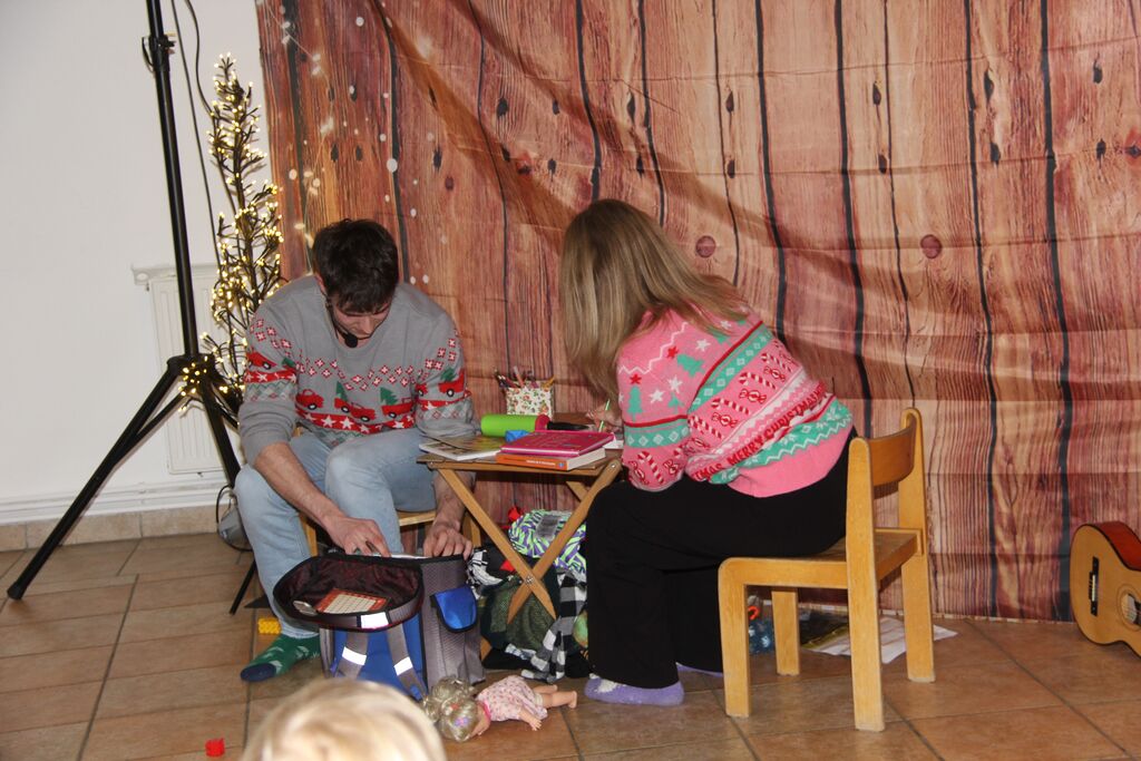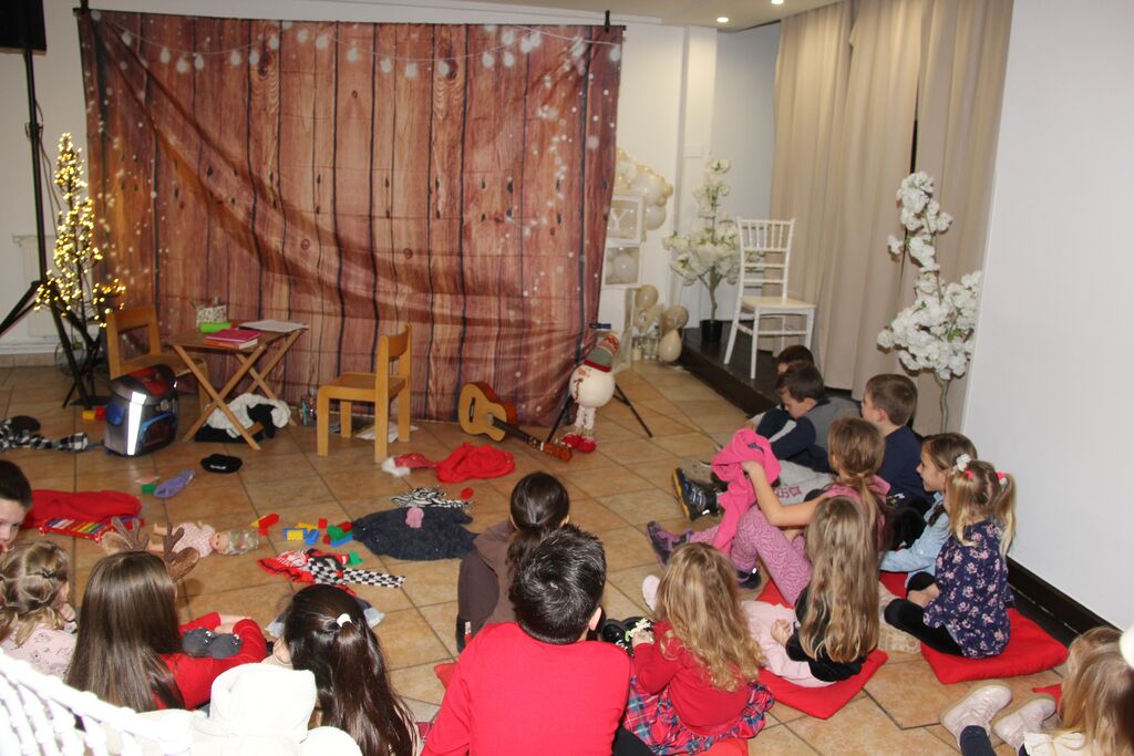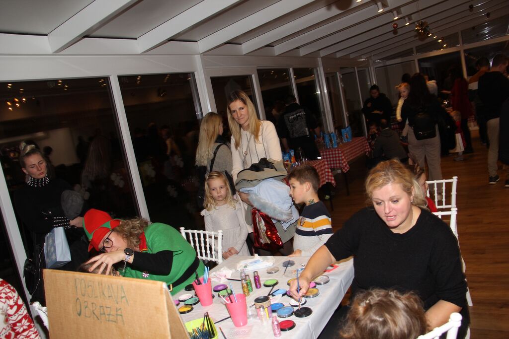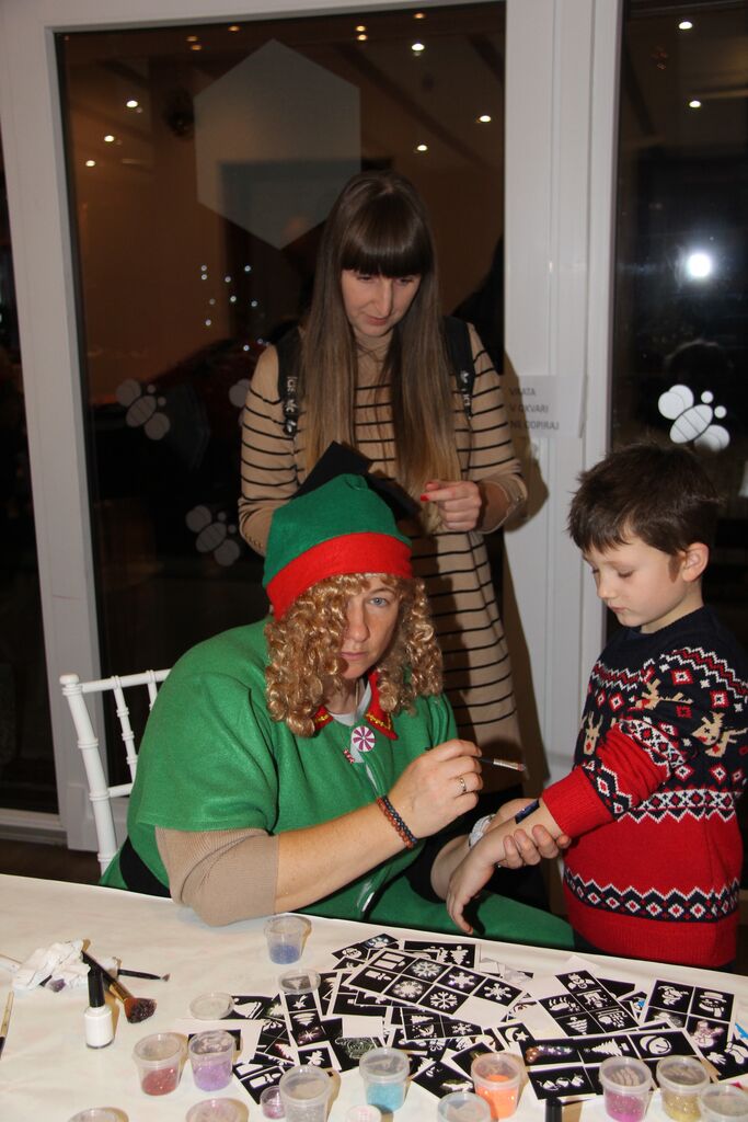 Še pred igrico so se številni postavili v vrsto pri poslikavi obraza in tattoo poslikavi, v različnih ustvarjalnih delavnicah ter svojo risbico oddali v Božičkov nabiralnik. Božiček je obljubil, da bo vse risbice pogledal in najboljšo tudi nagradil. In je na koncu igrice res prišel se opravičil, ker je imel mali jelenček Rudolf, ki ima rdeč nosek, težave z orientacijo zaradi megle in nato najmlajše spraševal. Kar težka vprašanja je zastavljal otrokom, o pridnosti, o hrani, o ubogljivosti in jim, preden je podelil darila, dal nalogo, da vsak dan objamejo očka in mamico in jima rečejo, da jih imajo radi. In ker je bil danes prvi dan so že morali steči k staršem in jih objeti.