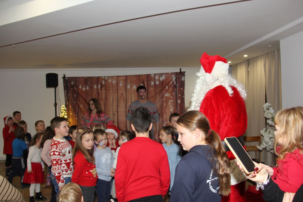 Nato so na vrsto prišli vsi otroci zbrani v Gostišču pri Čebelici in medtem, ko so mamice in očki naredili našteto posnetkov svojega otroka v naročju Božička je le ta prejel darilo in nato hitro odbrzel še na delavnice, da ne bo kaj zamudil. Ker se ob igri hitro utrudimo, saj nam zmanjka moči, je bilo poskrbljeno tudi za okrepčilo in to tisto, kar imajo otroci najraje - pohančka in pomfrit, lepše ocvrti krompirček in to z različnimi omakami, vendar brez solate, saj ta ne gre v slast otrokom. No, če je že nuja se tudi potrudijo in jo pojejo, drugače pa raje ne.