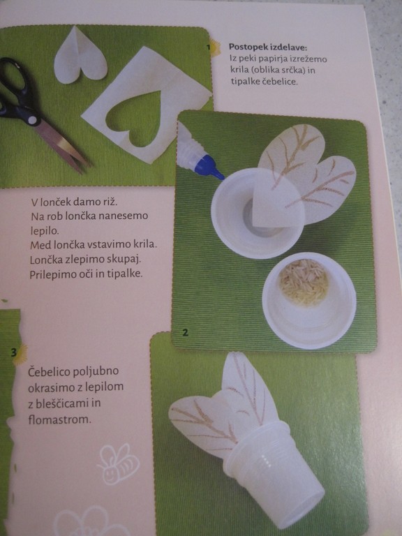 Je že tako, da pri ĆZS ne potrebujejo veliko časa, da realizirajo idejo posebno še, če je ta dobra. Tako je Čebelarska zveza Slovenije Javna svetovalna služba v čebelarstvu, ob pomoči avtorjev Darinke Čobec, Marte Lamovšek, Marije Pilko, Milene Dimec, Branka Bizjana, Angele Zajc in Mojce Krajič izdala zanimivo knjižico idej Čebela ustvarjalne ideje 2. del. Uvodne besede je napisal predsednik ČZS Boštjan Noč in nam ob tem razložil čemu služi knjižica številnih idej, ki so tokrat objavljene in so ne le zanimive, ampak spodbujajo različne ustvarjalne talente. Poleg tega so končni izdelki narejeni iz materialov, ki se nahajajo pri vsaki hiši. S knjižico ustvarjalnih idej želimo slovensko čebelarstvo in vse povezano z njim približati našim najmlajšim. Prepričan sem, da bo knjižica dobrodošel pripomoček v vrtcih, šolah in tudi doma, da bo dosegla svoj namen - otroku predstaviti čebelarstvo v najširšem smislu besede in to skozi ustvarjanje je v uvodu še zapisal predsednik ČZS Boštjan Noč. Urednica knjižice je Lidija Senič, vodja strokovnih služb na ČZS, ki je skrbela tako za tehnično kot organizacijsko plat izdaje knjižice. Ob pomoči knjižice lahko skupaj z otroci marsikaj naredimo saj so nekateri izdelki preprosti, drugi malo bolj zahtevni, a če je volja, pride tudi rezultat. Čebelica-ropotulja je že ena izmed umetnin, ki lahko nastane pod otroškimi prsti ob pomoči staršev ali starih staršev. Lahko priskočijo na pomoč tudi starejši bratci ali sestrice in skupaj ustvarjajo ob pomoči knjižice. Če imamo papirnato brisačko, črn flomaster, vodene barvice, čopič, vodo, lepilo in zelen list formata A4 lahko ustvarimo čudovito kompozicijo, ki se imenuje Na travniku. Če se vam zdijo sobne rastline monotone jih poživite s čebelico lutko in lepe sobne rastline bodo še bolj zanimive. Izdelamo lahko tudi čudovite rože, voščilnice v obliki čebelnjaka, leseno priponko čebele, čebele iz orehov, sliko iz semen, ki ob pogledu nanjo navduši vsakega, čebelo kot hranilnik in še mnoge druge zanimive in uporabne ter praktične stvari.