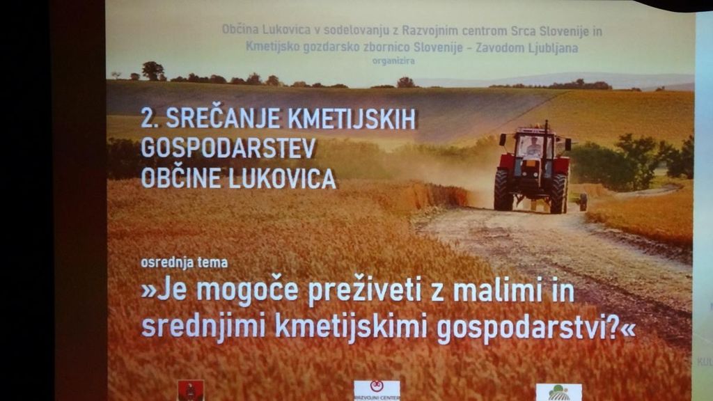 Občina Lukovica je v torek, 15. marca 2022, v sodelovanju z Razvojnim centrom Srca Slovenije in Kmetijsko gozdarsko zbornico Slovenije - Zavodom Ljubljana, organiziralo 2. srečanje kmetijskih gospodarstev, ki je potekalo v Kulturnem domu Janka Kersnika v Lukovici. Srečanja, ki je bilo namenjeno vsebinam novega strateškega načrta skupne kmetijske politike 2023 – 2027, predstavitvi dobre prakse dveh lokalnih kmetij, ter vprašanju, če je mogoče preživeti z malimi in srednjimi kmetijskimi gospodarstvi, se je udeležilo lepo število nosilcev kmetijskih gospodarstev v občini Lukovica.