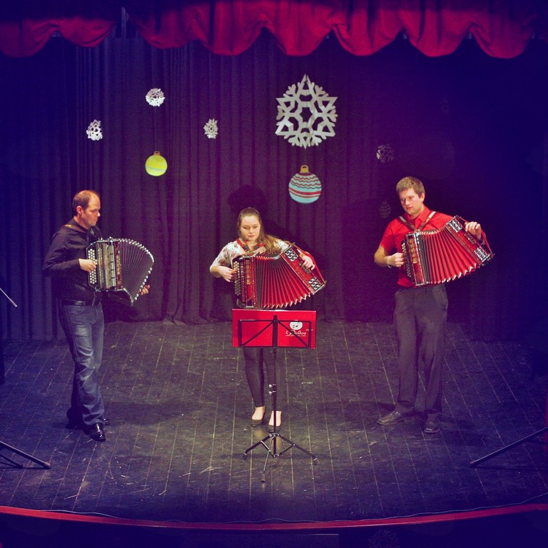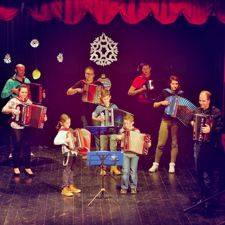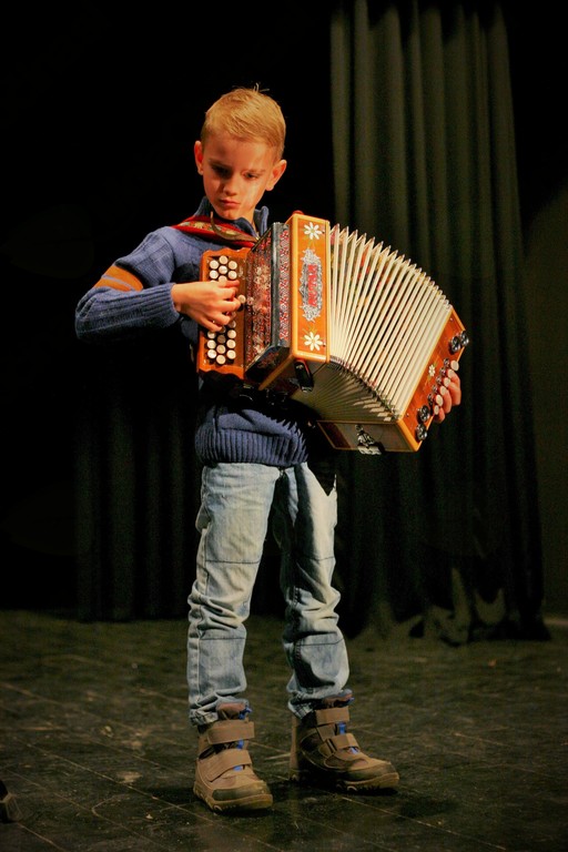 V uvodu v čudovit glasbeni večer smo slišali vsem dobro poznano novoletno pesem Daj mi poljub, katero so nam zaigrali učenci glasbene šole Polton skupaj z učiteljem Tomažem Jemcem. Nato se nam je na diatonični harmoniki predstavilo dvajset učencev glasbene šole, ki so nam predstavili kar širok spekter skladb od začetnih do tehnično bolj zahtevnih. V prvem delu koncerta so se nam predstavili najmlajši in tisti učenci, ki so šele dobro vstopili v čarobni svet glasbe, najmlajši med njimi so bili šest letni Jure ter sedem letni Lovro, Luka in Žiga. Slišali smo poznane otroške in narodne pesmi, dva venčka narodnih pesmi ter refrena gadove Malo, malo še in Miheličeve Dekle iz Ribnice. Nato sta nam Katja Zore in Lenart Gerčar za popestritev večera zaigrala Modrijanovo Ko rož’ce ji bom sadil in Miheličev valček Kjer lastovke gnezdijo.