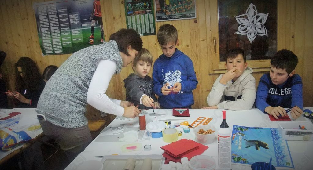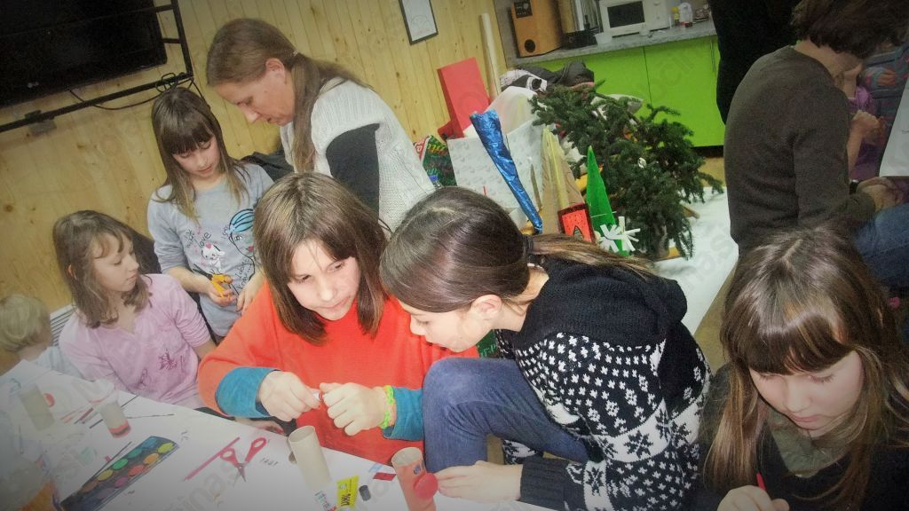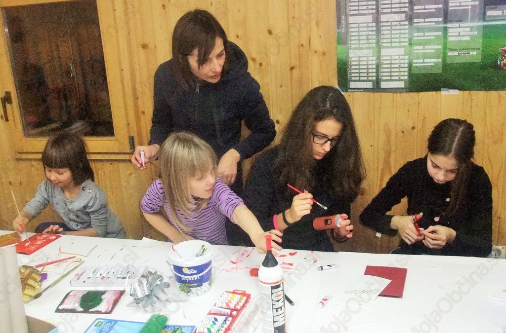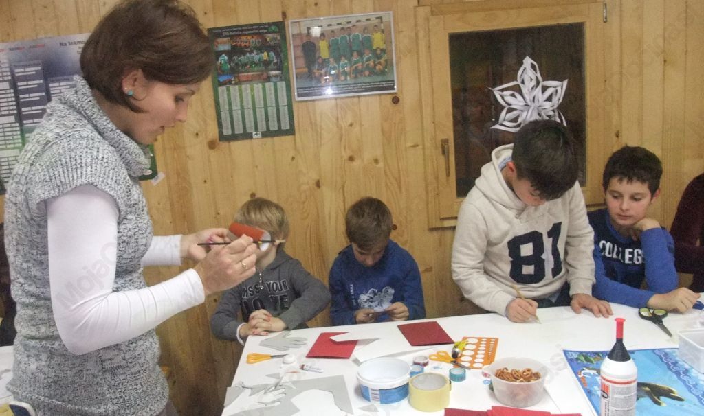 Druženje je bilo namenjeno otrokom vseh starosti, mlajši so prišli v spremstvu vsaj enega starša, starejši pa tudi sami.  Vstopnina je bila visoka, koš dobre volje, ki so jo vsi pristopni z lahkoto izpolnili. Otroci so izdelovali čestitke, obeske, jelenčke, snežinke za na okno, 3D snežinke, itd.