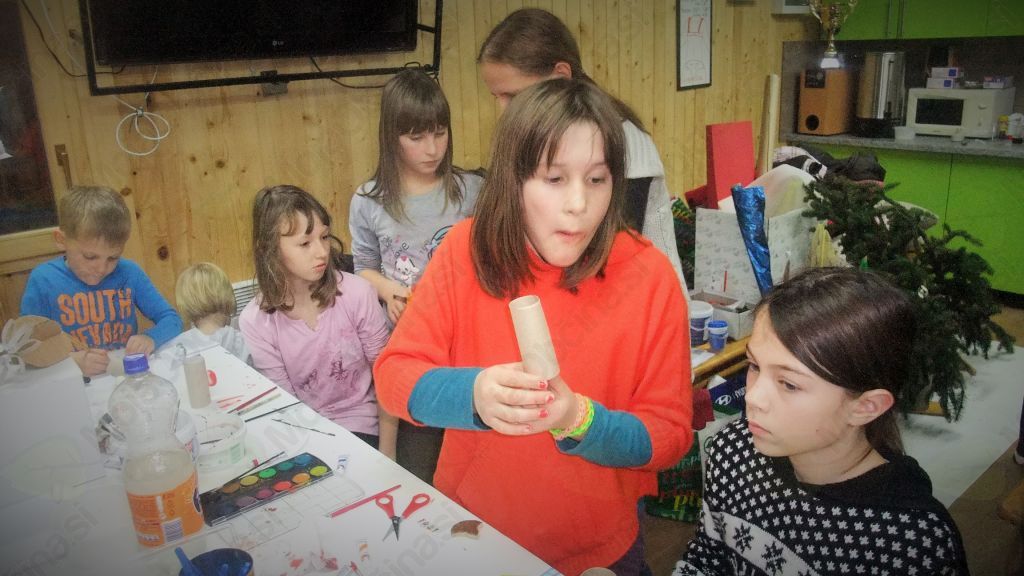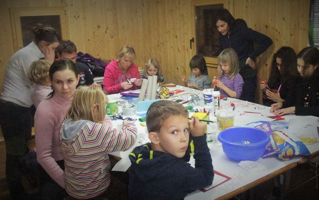 v petek, 12. 12. 2014 ob 17.00 se je v toplo zakurjeni brunarici v Rafolčah zbralo približno 25 otrok, starih od 3. do 12 let, nekateri tudi s starši (10 staršev). V KS Rafolče je nastalo precej novih hiš in naselile so se v glavnem mlade družine. Da bi se izognili potrošništvu, uporabili čim manj kupljenih stvari in uporabili čim več domišljije, je naša nova vaščanka ga. Špela Peršin, prevajalka in mati dveh otrok, dobila idejo, da bi izvedla neko dejavnost z otroci v našem kraju in to ji je tudi odlično uspelo.